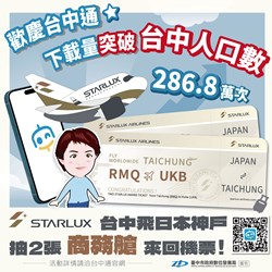 數位發展局長林谷隆表示,台中市政府積極打造數位市民平台《台中通TCPASS》,積極導入市府各項便民服務,除了與衛生局合作開發全台最便利的多元「疫苗預約系統」,近期更與市府最新成立的捷運工程局合辦「上籃得分」捷運藍線開工數位集章活動,讓台中通不斷推陳出新多功能。此次更歡慶下載數突破286.8萬,正式突破台中市總人口,攜手星宇航空舉辦台中-日本神戶商務艙機票歡慶活動。
