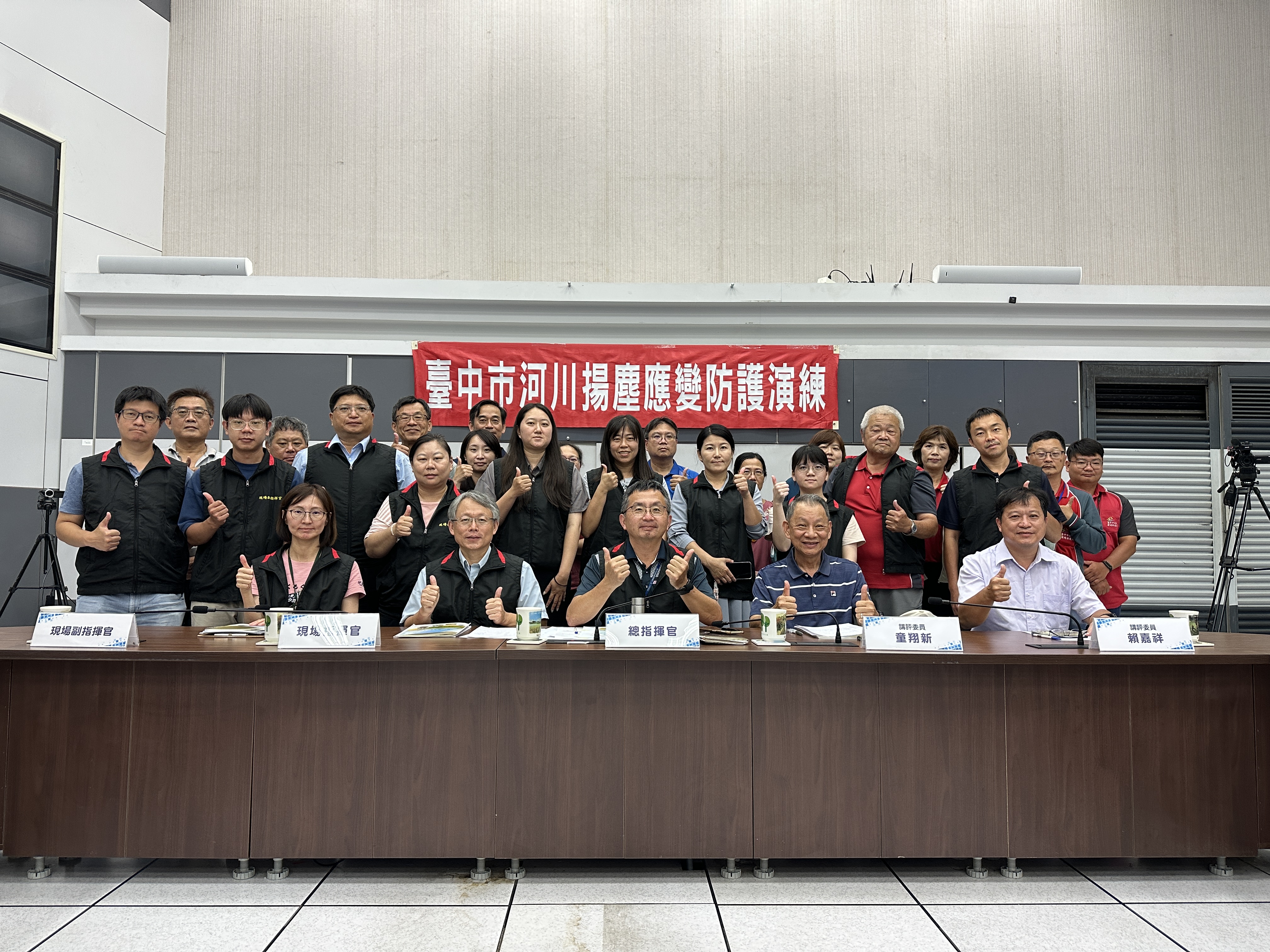 受極端氣候影響,暴雨和颱風發生頻率增加,也增加河川揚塵好發的風險。台中市政府環保局今年入秋第一波東北季風前提早因應,除持續辦理河川揚塵防制作業外,今(4)日也舉辦台中市河川揚塵應變防護演練防患未然,此次演練動員中央部會經濟部水利署第三河川分署、農業部農田水利署台中管理處及交通部高速公路局中區養護工程分局、市府共44個應變單位進行實境演練,模擬各應變單位接獲應變通報後立即執行應變措施,藉由臨場演練讓各應變單位更加熟悉應變程序,提升河川揚塵應變即時性。