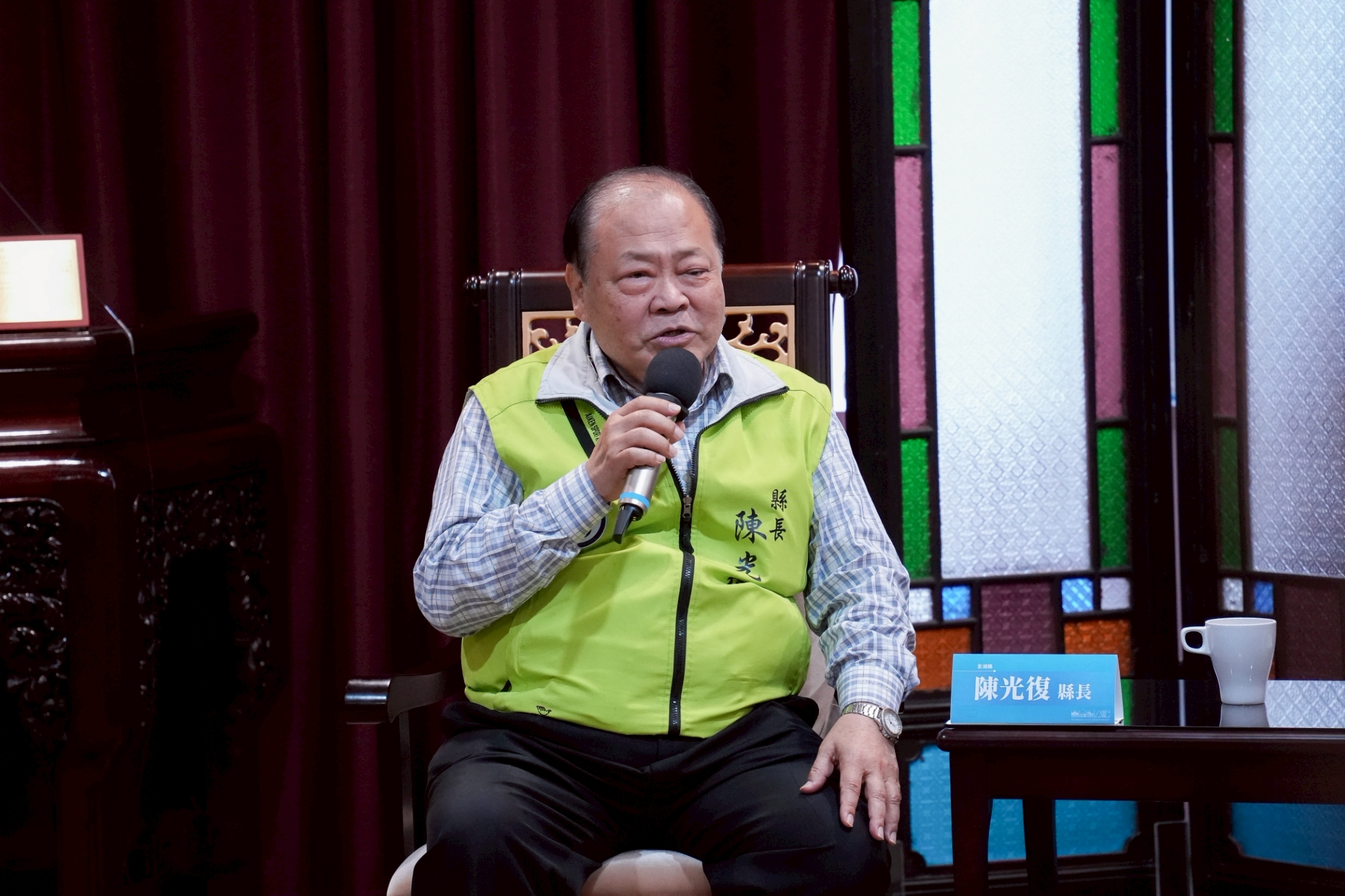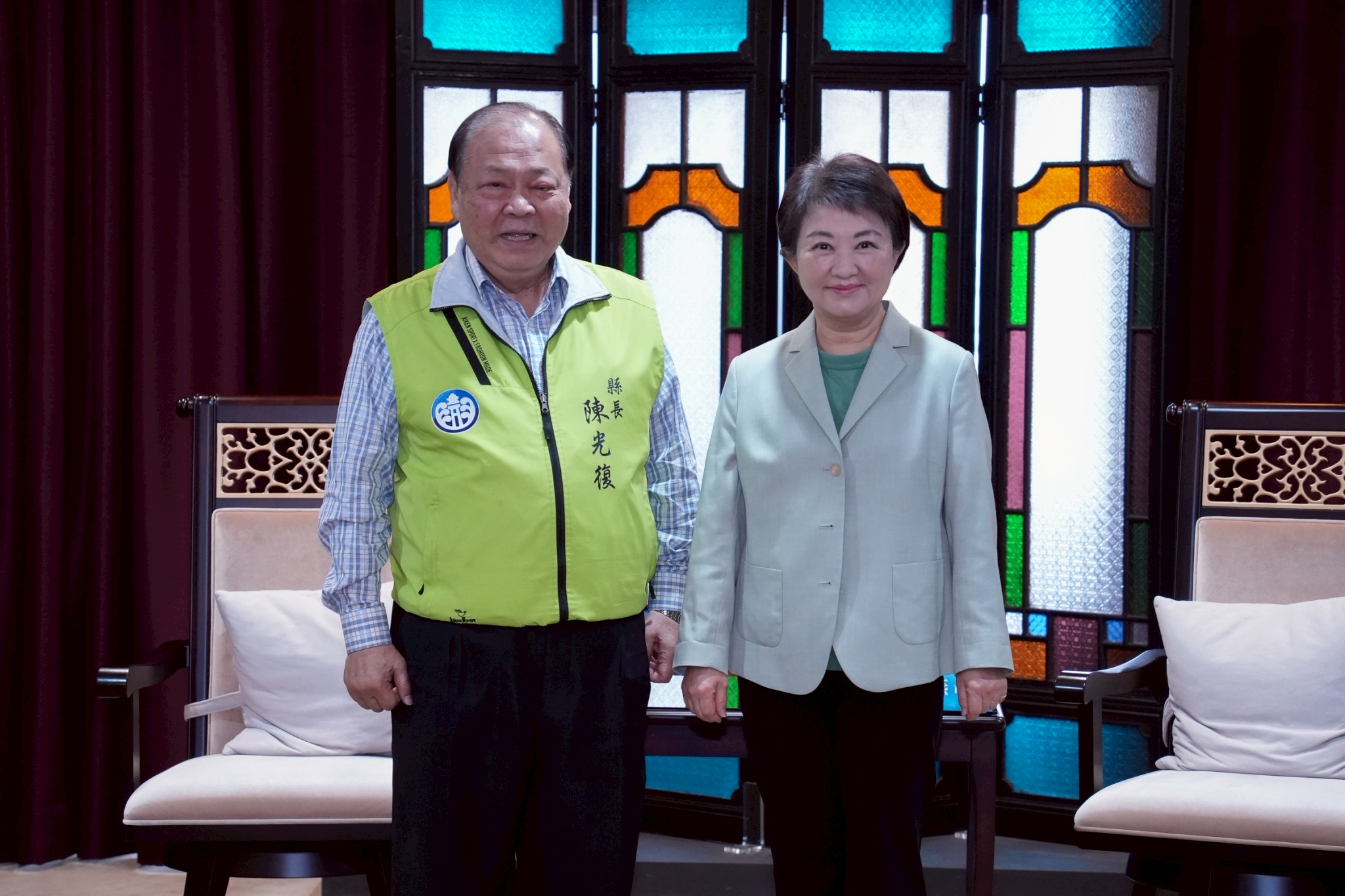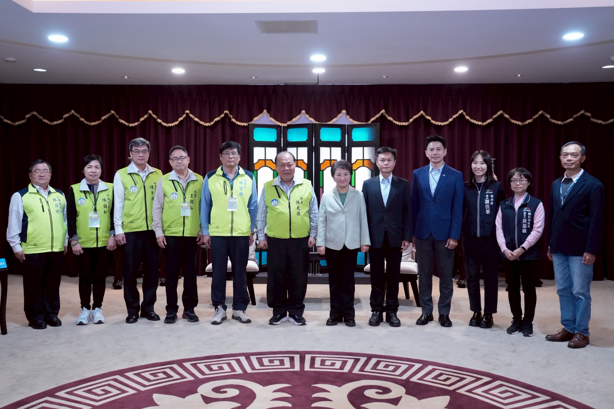 今日交流氣氛熱絡,澎湖縣長陳光復率縣府主管一行來訪,台中市由盧秀燕市長、市府副秘書長林育鴻、交通局長葉昭甫、秘書處長謝佳蓁、數位局副局長黃惠敏、環保局副局長商文麟等共同接待。(12/18*15)*數位局