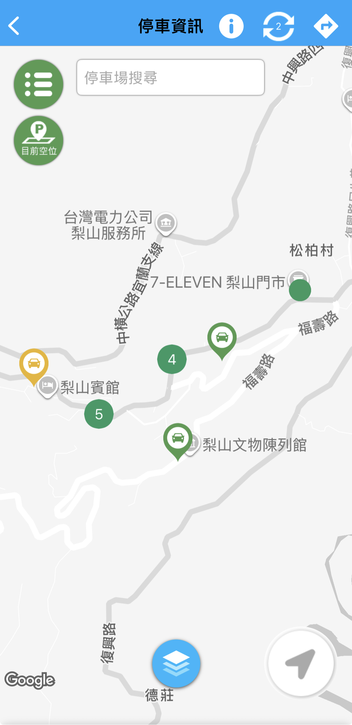 葉局長指出,梨山地區為台中市知名的觀光景點,吸引大量民眾上山旅遊,市府持續鼓勵民眾多搭乘節能減碳的公共運輸工具,考量仍有自行開車前往民眾的停車需求,交通局已於梨山地區開放3座路外停車場,包含梨山遊客中心提供6格車位、梨山文物陳列館旁9格車位以及梨山櫻緣丘38格車位,方便遊客參觀梨山觀景台、梨山賓館生態環保步道、千櫻園、福壽山農場等梨山周邊熱門景點。